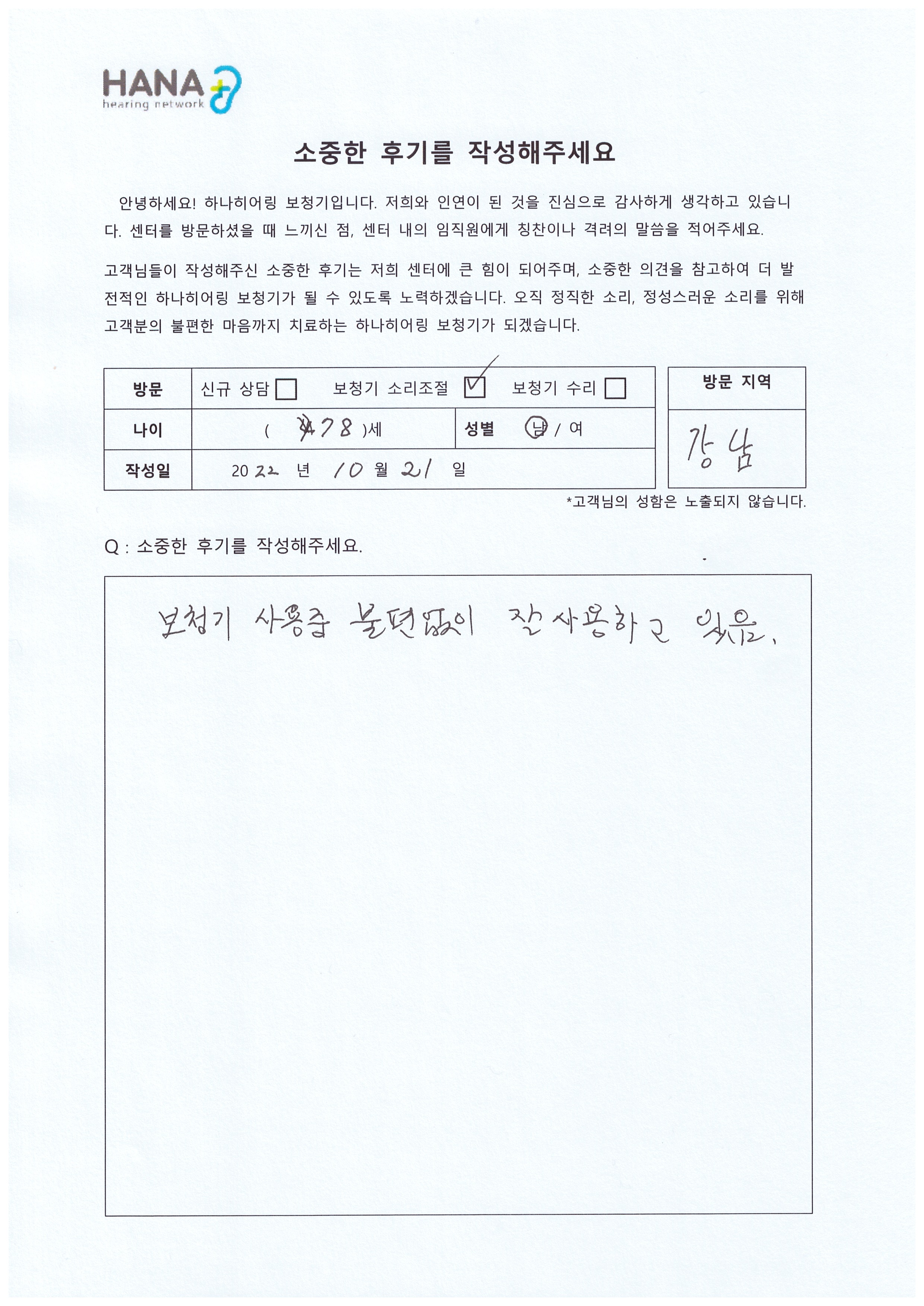 이번에도 고민없이 하나히어링 보청기를 찾아주셔서