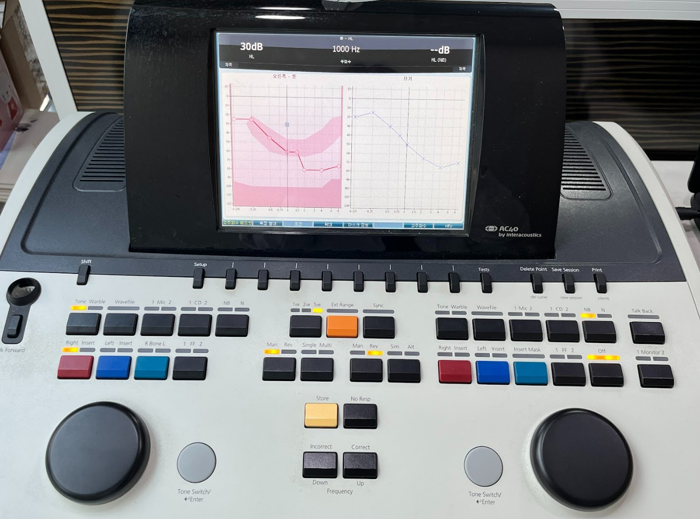 전형적인 고주파 난청으로, 음은 들리지만 자음이 뭉개져 말소리 구분이 어려운 상태였습니다.