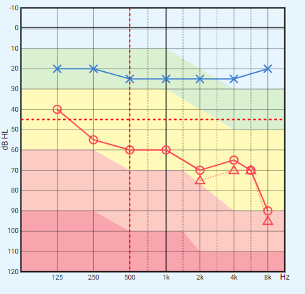 로 왼쪽 귀에만 중~고도 수준의 난청을 보였습니다.