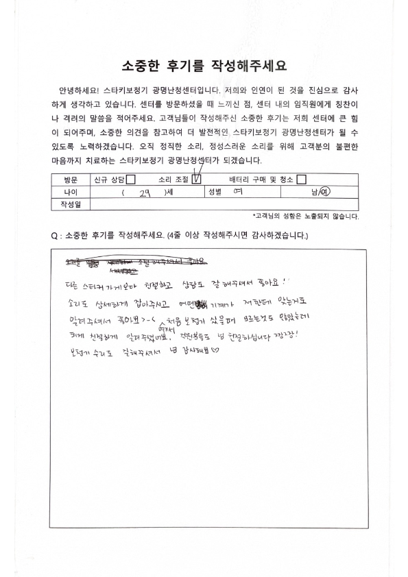 다른 스타키 가게보다 친절하고 상담도 잘 해주셔서 좋아요! 소리도 상세하게 잡아주시고 어떤 기계가 저한테 맞는지도 알려주셔서 좋아요, 여기서 처음 보청기 샀을 때 모르는 것도 많았는데 되게 친절하게 알려주셨어요. 직원분들도 넘 친절하십니다 짱짱! 보청기 수리도 잘 해주셔서 넘 너무 감사해요