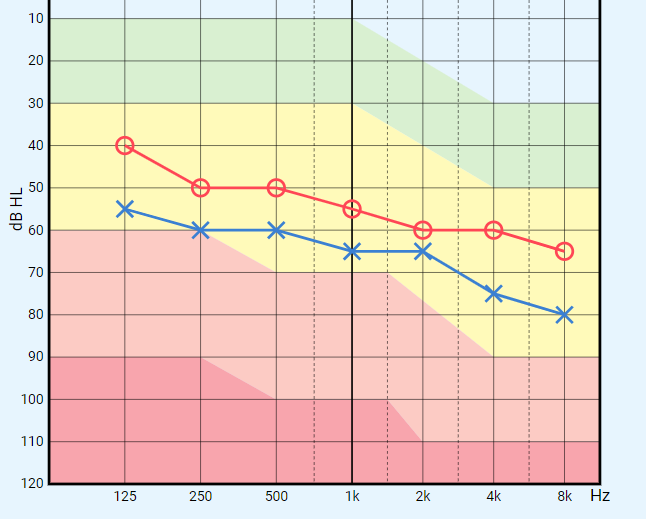 보청기가 꼭 필요하신 청력입니다.